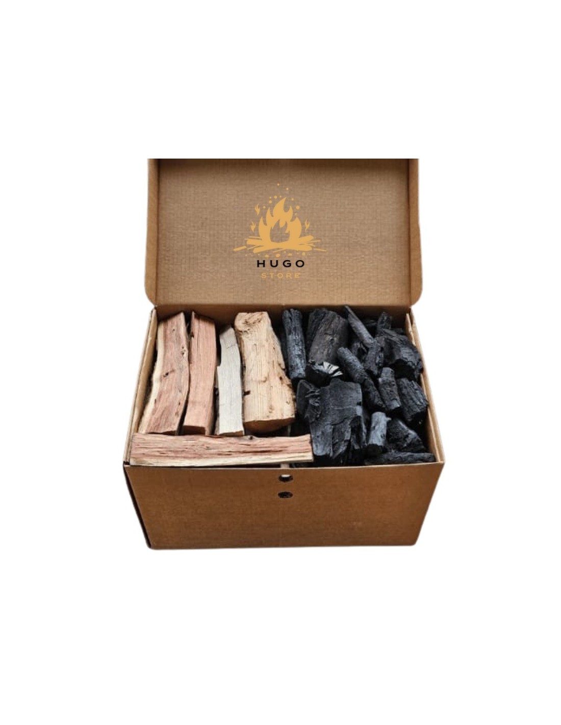 La caja de leña y carbón Hugo Store es la opción perfecta para quienes buscan comodidad, limpieza y practicidad en sus asados o calefacción. Incluye trozos de leña seca seleccionada junto con carbón vegetal de calidad, ambos listos para usar y presentados en un formato de caja de cartón reutilizable, fácil de transportar y con excelente presentación.